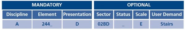 This would be translated as the Architectural layer (A) showing spiral stairs (244_; using CI/Sfb), dimensions (D) on level 2 block B, zone D (02BD) with no status (_), at a detail equivalent to a 1:50 drawing (E). In more common applications, this layer name would often be shortened to A244_D using only the mandatory fields, or A244_DSTAIRS to help you understand the element type. How many of us know that element 244_ is a spiral staircase??