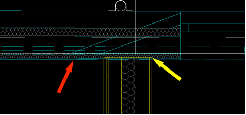 When we came to use the model, we found that he had cheated, allowing walls to overlap rather than joining correctly as shown by the yellow arrow. Once shaded and plotted this junction looked fine but when we came to add the structural beams we found it very hard to locate the correct intersection points for the beams.