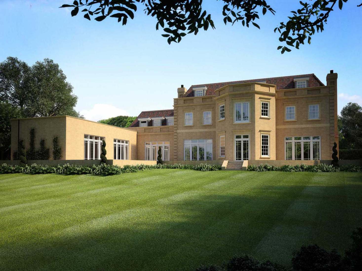 Large 3 storey replacement detached house with attached multi-car garage and swimming pool.