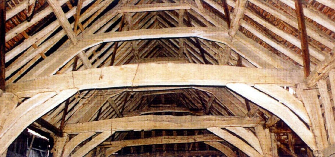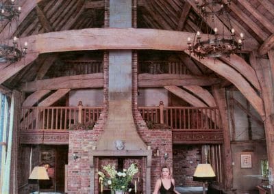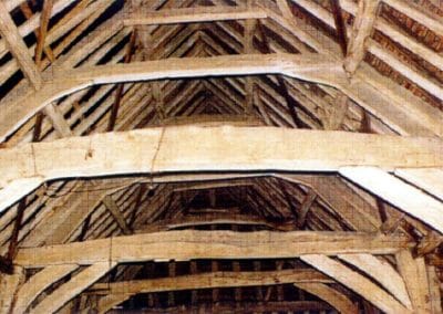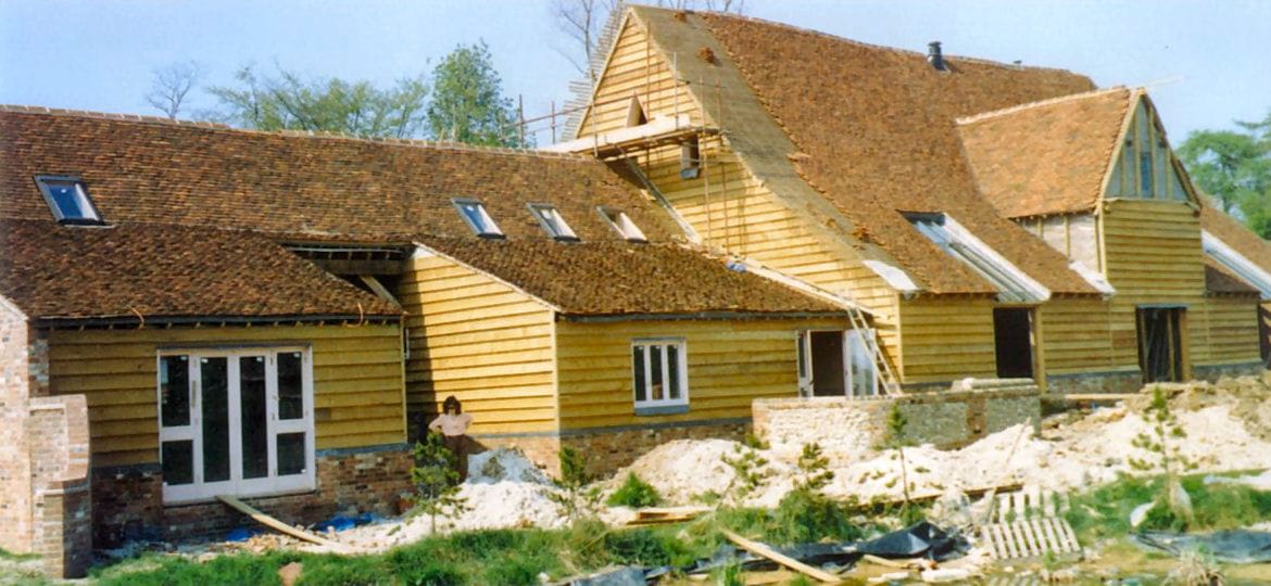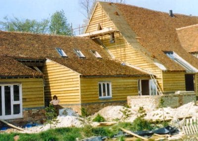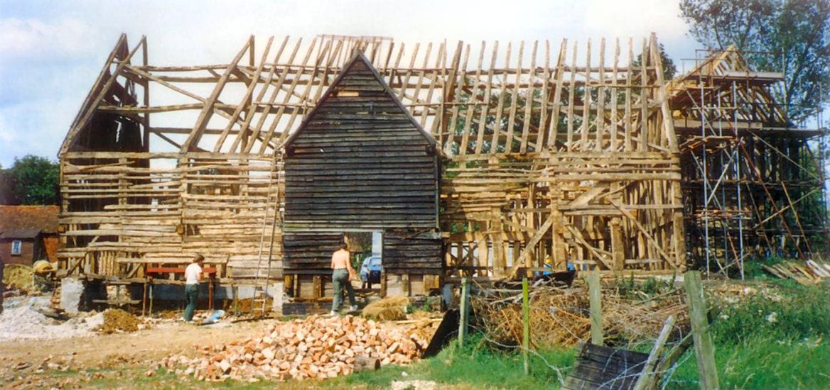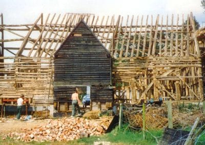 The original barn was C16 and was in poor condition with the frames racked over at an angle as shown in the photographs. The barn was stripped back to the bare frame and squared up before being reassembled using as much of the original structure as possible.